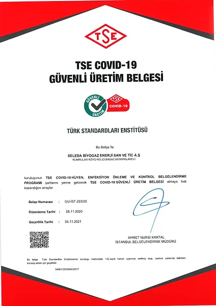 Seleda olarak gübrelerimizin üretimi sırasında güvenlikten ve sağlıktan asla ödün vermeden üretimimizi sürdürmekteyiz. Bu hassas dönemde Türk Standartları Enstitüsü’nün (TSE) Hijyen, Enfeksiyon Önleme ve Kontrol Belgelendirme Programı’nın şartlarını yerine getirerek TSE COVID-19 Güvenli Üretim Belgesi almaya hak kazandık.