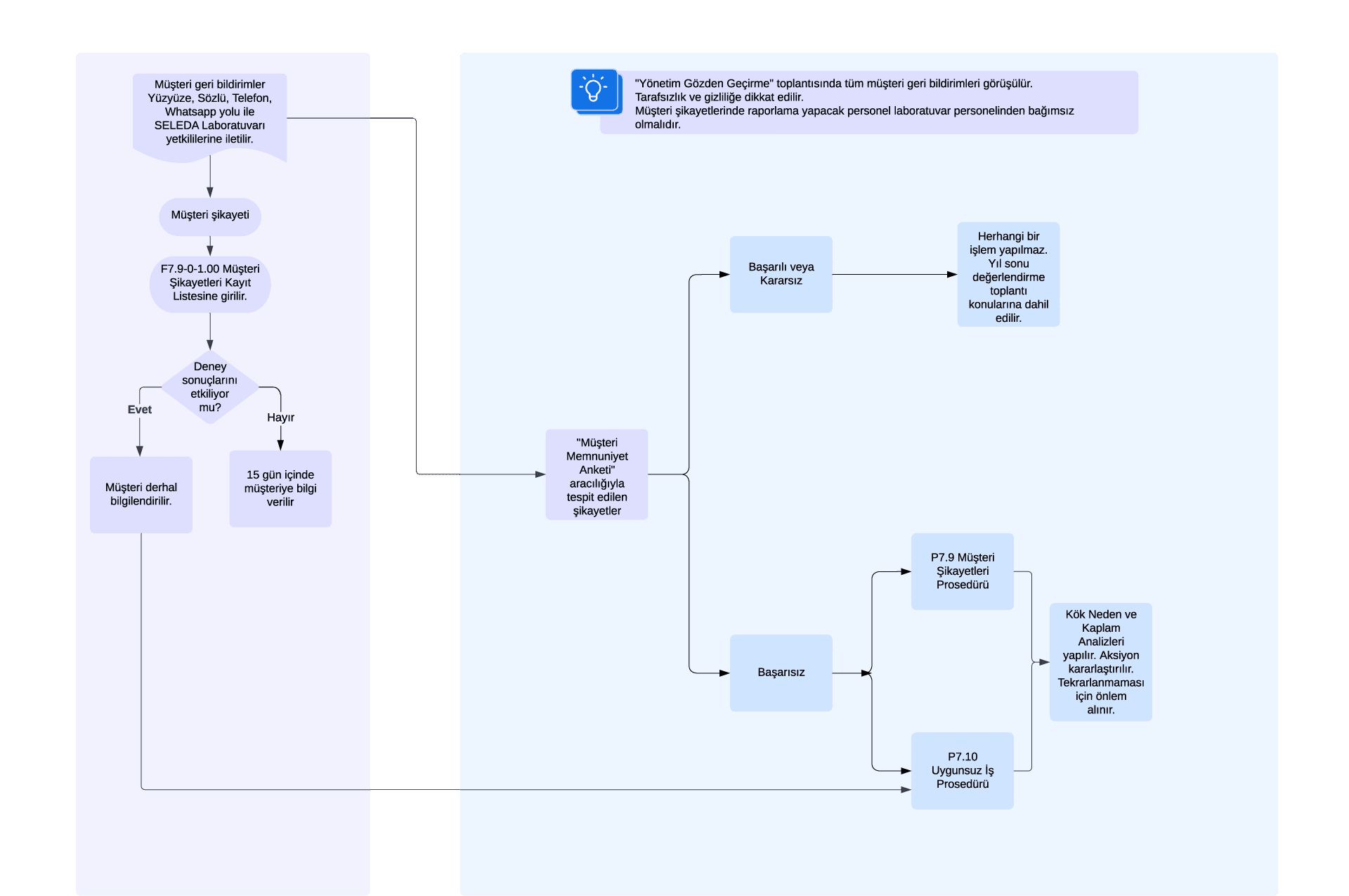 Müşteri şikayetlerinin değerlendirilmesi ve müşteri memnuniyetinin artırılması amacıyla oluşturulan süreçlerimiz, şikayetlerin alınmasından çözümüne kadar tüm aşamaları kapsamaktadır. Şikayetlerin nasıl ele alındığını detaylıca görmek için aşağıdaki Müşteri Şikayetleri Değerlendirme Akış Şemasını inceleyebilirsiniz.